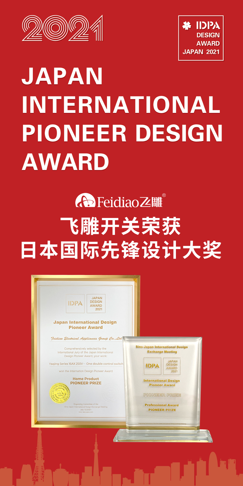 恭喜飞雕集团荣获第三届日本IDPA AWARD国际先锋设计大奖!